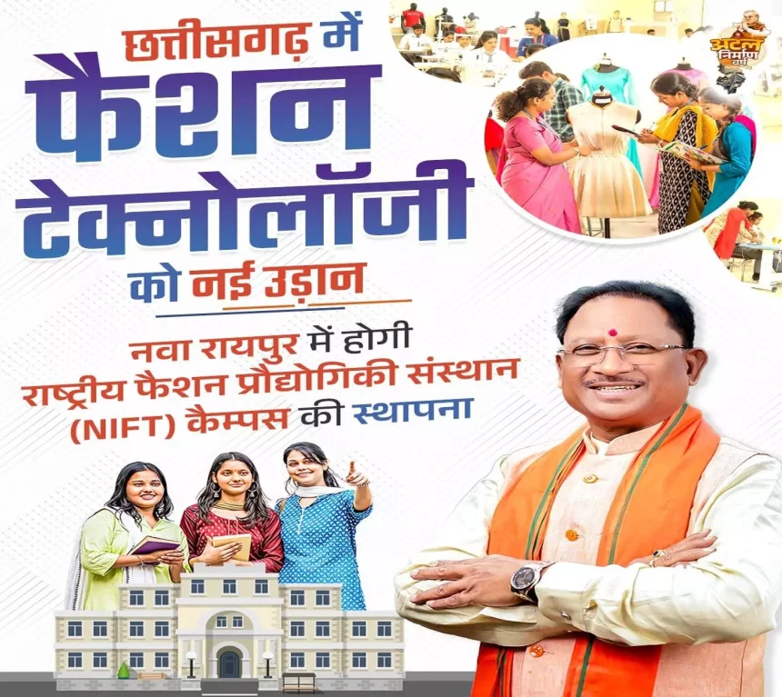 Raipur. रायपुर। छत्तीसगढ़ में फैशन टेक्नोलॉजी और डिजाइन के क्षेत्र में रुचि रखने वाले युवाओं के लिए बड़ी खुशखबरी है। राज्य की राजधानी नया रायपुर में राष्ट्रीय फैशन प्रौद्योगिकी संस्थान (NIFT) का कैम्पस स्थापित होने जा रहा है। यह संस्थान युवाओं के हुनर को तराशने और फैशन इंडस्ट्री में करियर बनाने के लिए एक मजबूत आधार प्रदान करेगा।