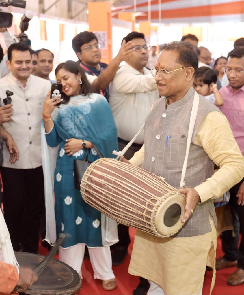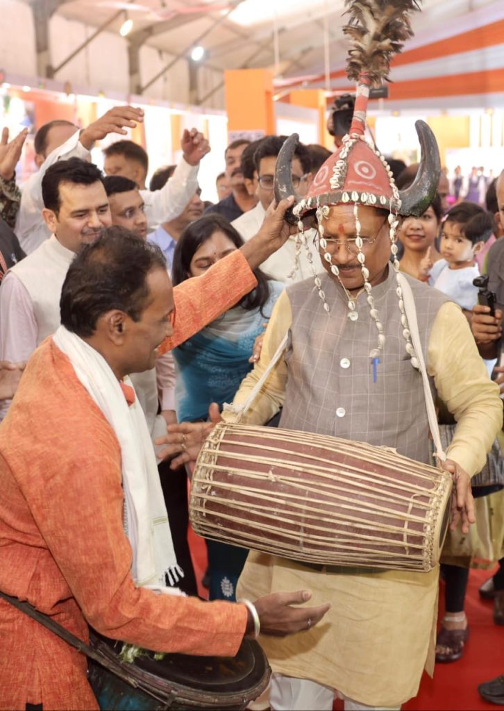 छत्तीसगढ की संस्कृति को संजोकर रखने और उनका प्रचार प्रसार करने के लिए छत्तीसगढ के वाद्ययंत्रों की प्रदर्शनी भी राज्योत्सव में लगाई हैl कलाकार श्री रिखी क्षत्रीय ने मुख्यमंत्री श्री विष्णु देव साय को मांदर भेंट किया, मुख्यमंत्री ने वादकों के साथ मांदर बजाकर उनका उत्साह वर्धन किय