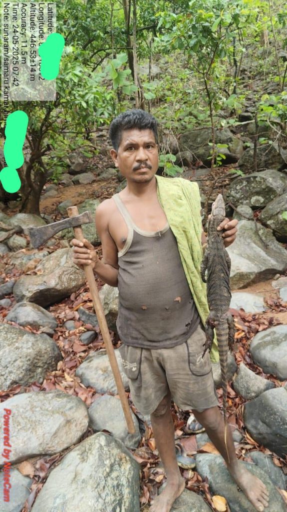 गिरिश गुप्ता गरियाबंद:- माननीय श्री केदार कश्यप जी, वनमंत्री वन एवं जलवायु परिवर्तन विभाग छ.ग. शासन, श्री सुधीर अग्रवाल प्रधान मुख्य वन संरक्षक (वन्यप्राणी) रायपुर छत्तीसगढ़, श्रीमती सतोविशा समाजदार फील्ड डायरेक्टर, श्री वरुण जैन उपनिदेशक के मार्गदर्शन में एवं श्री गोपाल सिंह कश्यप सहायक संचालक उदंती (एण्टी पोचिंग टीम नोडल अधिकारी) के नेतृत्व में वन परिक्षेत्र सीतानदी (कोर) में गश्ती के दौरान दिनांक 24.05.2025 को बिर्तासिल्ली परिसर से वन्यप्राणी मॉनिटर लिज़ार्ड (अनुसूची – 1) के अवैध शिकार करते हुए आरोपी सूनाराम वल्द समारू कमार को हिरासत में लिया एवं अपराध में प्रयोग किये गये कुल्हाड़ी एवं अन्य सामग्रियों को एंटी पोचिंग यूनिट द्वारा जप्त कर सम्बंधित बीट गार्ड के सुपुर्द किया गया।