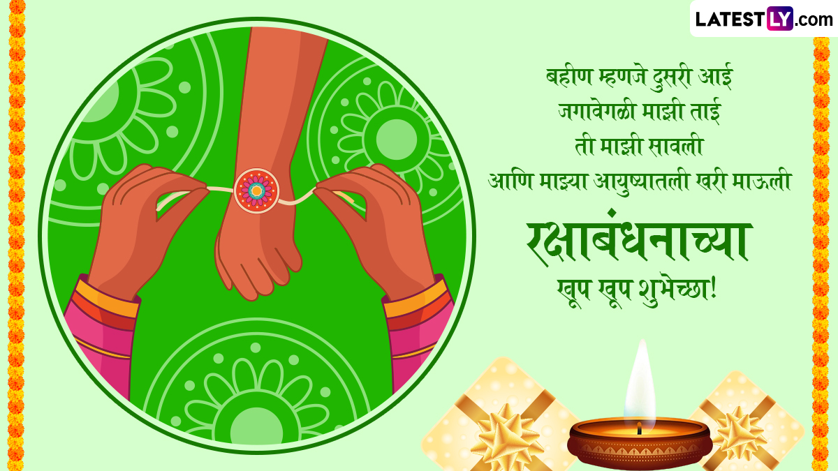 भाई-बहन के अनोखे रिश्ते का प्रतीक रक्षाबंधन हर साल बड़े ही उत्साह के साथ मनाया जाता है. इस दिन बहनें अपने भाइयों की कलाई पर रंग-बिरंगे धागे, जिन्हें ‘राखी’ कहते हैं, बाँधती हैं. बदले में, भाई अपनी बहनों को उपहार देते हैं और उनकी देखभाल और सुरक्षा का वादा करते हैं. यह परंपरा सदियों से चली आ रही है. यह पर्व भाई-बहन के बीच प्रेम और विश्वास को मजबूत करता है. रक्षा बंधन के इस पावन पर्व की आप इन शानदार हिंदी विशेज, कोट्स, वॉट्सऐप मैसेजेस, फेसबुक ग्रीटिंग्स के जरिए शुभकामनाएं दे सकते हैं.